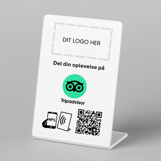 Med vores NFC & QR kode bordstandere, kort og selvklæbende pads kan dine kunder på få sekunder give dig 5-stjernede anmeldelser på Google, Tripadvisor og Trustpilot