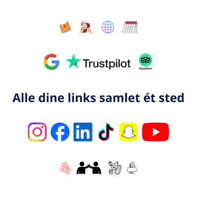 Alle vores NFC og QR kode produkter med NFC og QR kode. Så kan du lynhurtigt få nye anmeldelser på Trustpilot, Google og Tripadvisor eller nye følgere på Facebook, Instagram eller LinkedIn