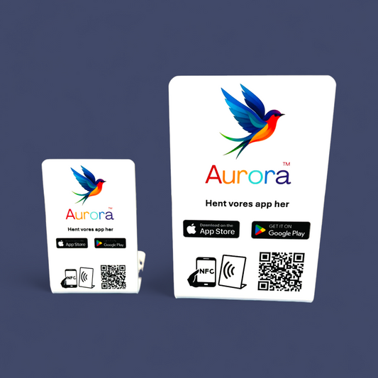 Del dine links, sociale medier eller anmeldelsessider med NFC eller QR kode produkter – direkte fra standen.