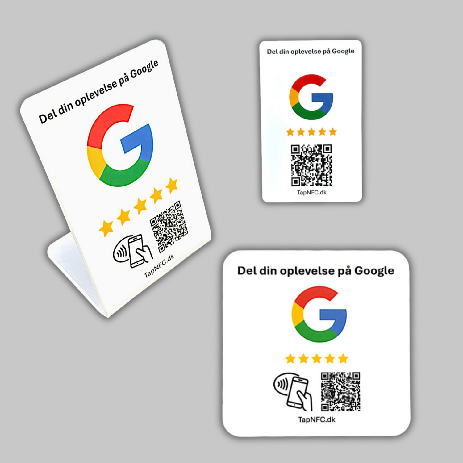 Med vores "Anmeld os på Google" - bordstandere, kort og selvklæbende pads kan du mangedoble antallet af anmeldelser på Google med et enkelt tap 📱