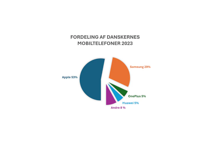 Apple og Android-enheder dominerer det danske marked, som illustreret i cirkeldiagrammet.