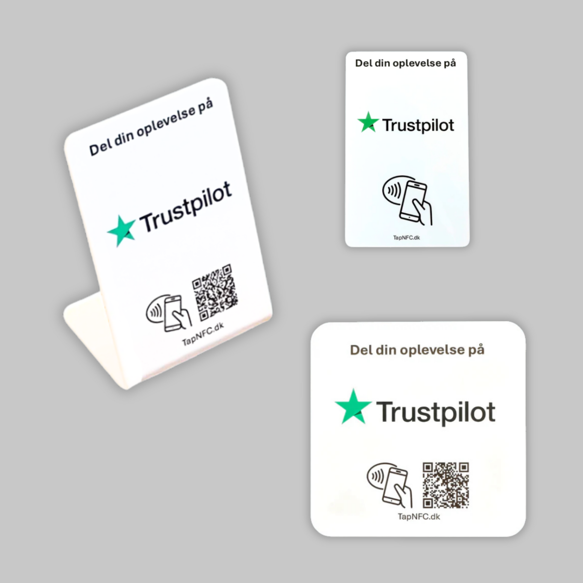 Alle vores produkter indeholder NFC og QR kode så dine kunder blot skal tappe produkterne eller scanne QR koden for at blive ført ind på din anmeldelsesside.